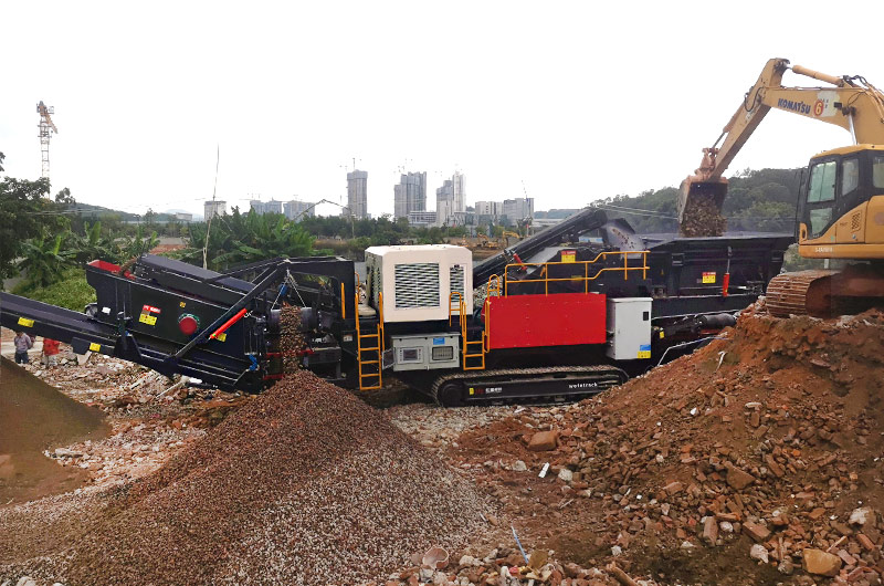 那么如何生產(chǎn),選用什么設(shè)備好呢?建筑垃圾集中在城市周邊,如果建設(shè)固定式生產(chǎn)線,就屬于工廠,需要經(jīng)過環(huán)保等部門的審批,往往周期長(zhǎng)、建設(shè)難度大、成本高,物料轉(zhuǎn)場(chǎng)的運(yùn)輸成本高。再者,很多時(shí)候拆遷產(chǎn)生的建筑垃圾分布不集中,作業(yè)環(huán)境復(fù)雜,綜合考慮,采用移動(dòng)式破碎篩分站是最佳的選擇。